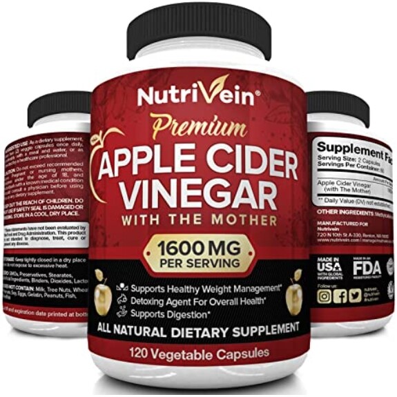 Nutrivein Apple Cider Vinegar Capsules with Mother - 1600mg - 120 Vegan Pills - Supports Healthy Weight Loss, Diet, Detox, Digestion, Keto, Cleanser - ...