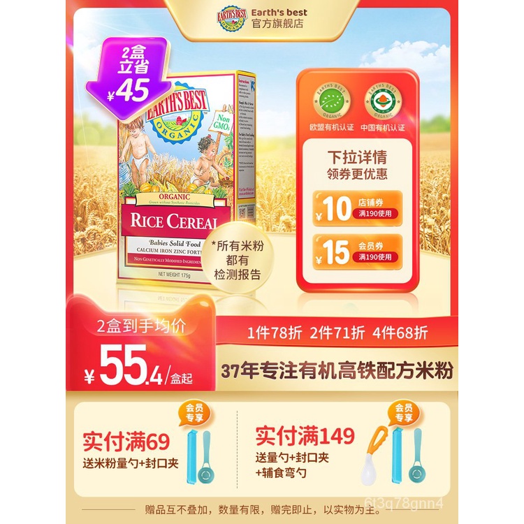 Earth's Best, Organic Rice Cereal, 8 oz (227 g) - Health Central USA Buy Earth's Best, Organic Rice Cereal, 8 oz (227 g) at the lowest price in United States. Check reviews and buy Earth's Best, Organic Rice Cereal, 8 oz (227 g) today. Earth's Best Organic Infant Cereal, Rice Cereal, 8 Ounce (Pack of 12) Twelve 8 oz. boxes of Earth's Best Organic Infant Cereal, Rice Cereal Made with organic rice grains and fortified with iron For infants transitioning to solid foods Recipe crafted with USDA-Certified Organic and non-GMO ingredients Nourishes your little one without any artificial colors or flavors Climate Pledge Friendly